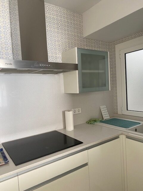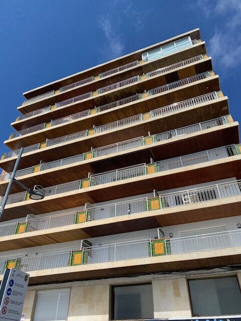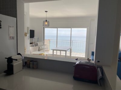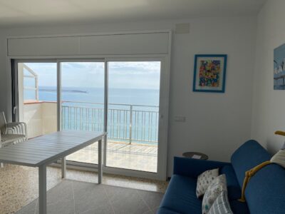 Amplio apartamento totalmente reformado situado en el edificio Salabret, dispone de 2 habitaciones dobles, baño completo, cocina equipada, salón comedor, terraza frontal al mar con vistas a Palamós y Torre Valentina