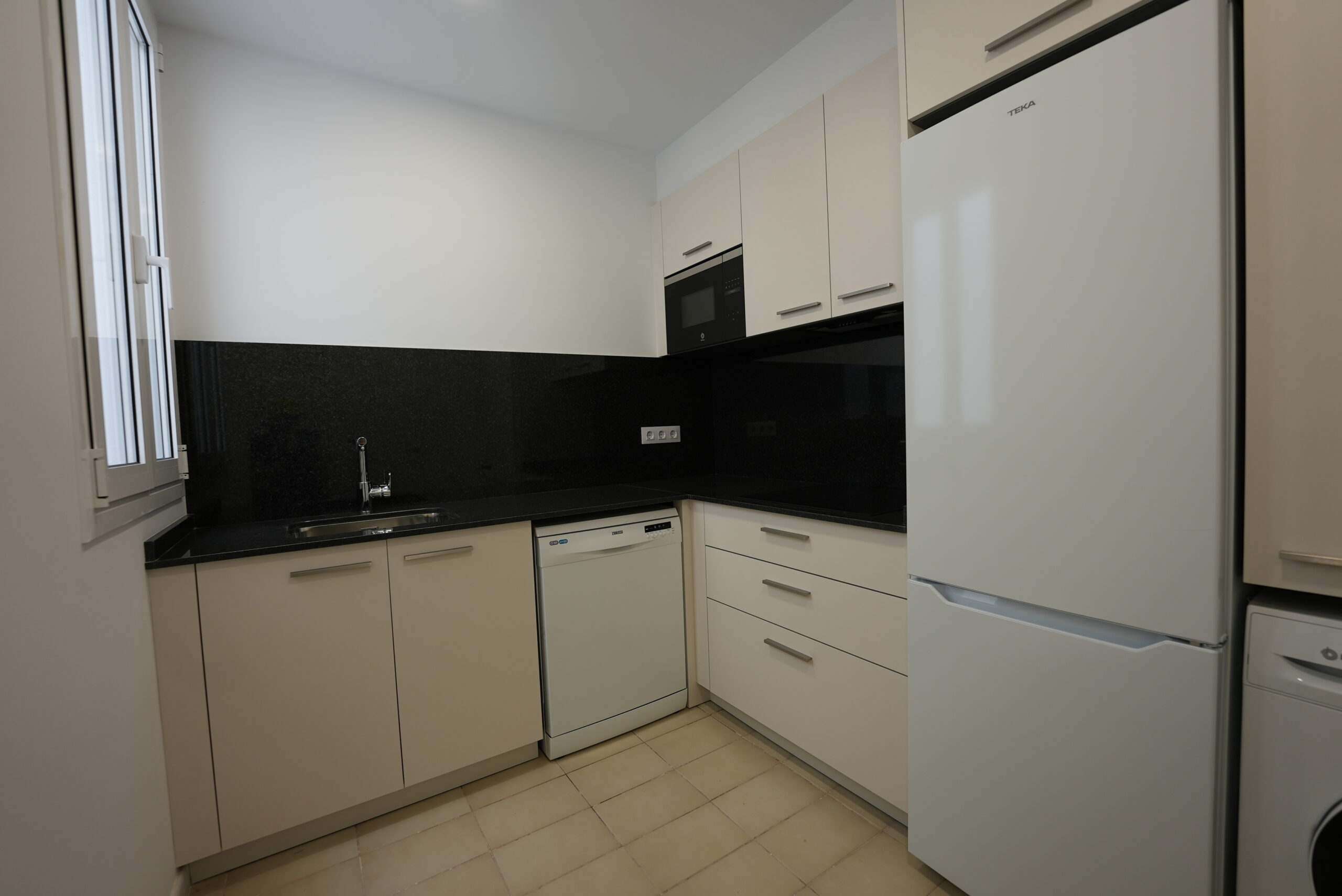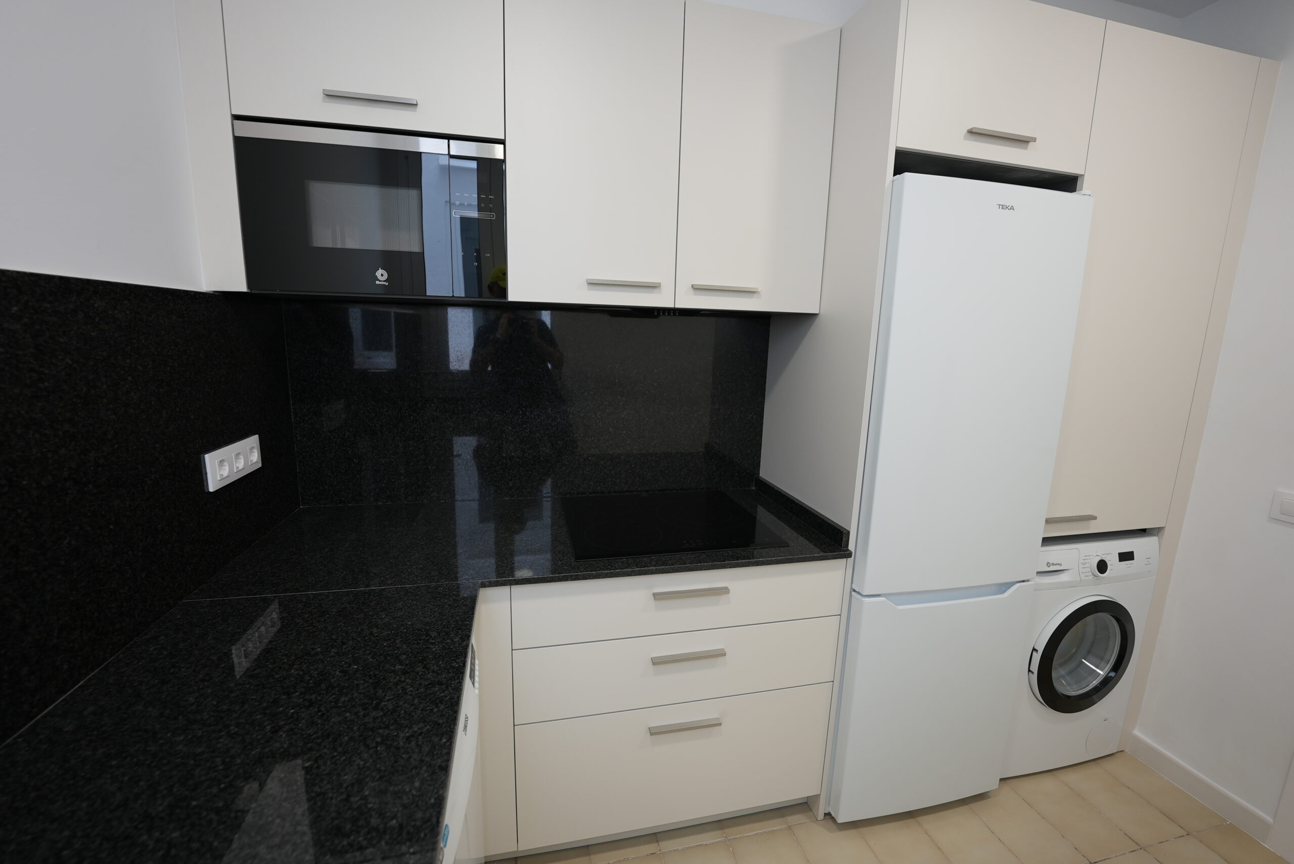 Cocina: 1Soleado apartamento totalmente reformado situado en el Paseo Marítimo de Sant Antoni de Calonge, dispone de 2 habitaciones dobles, baño completo, cocina equipada, salón comedor y gran terraza privada con barbacoa